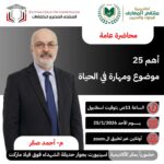 خاتمة المحاضرة: ركزت على أهمية “الذكاء الجمعي” ونشر ثقافة التعاون والتكامل بدلاً من التنافس الفردي، مستشهداً بآيات سورة الأنفال التي تفرق بين صفات الفرد المؤمن وصفات المجتمع المؤمن الذي يغير ويجاهد وينصر.