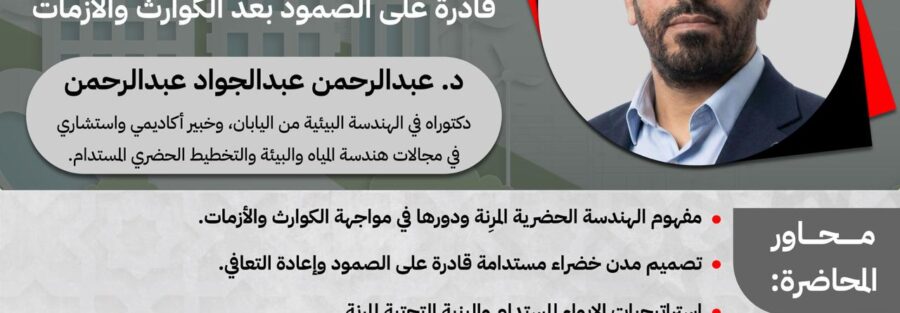 أكد الدكتور عبد الرحمن في ختام محاضرته أن “”المدن المرنة لا تُبنى بعد الكارثة، بل تُصمم قبلها””، معتبراً الهندسة الحضرية المرنة ضرورة أخلاقية لضمان مستقبل آمن للأجيال القادمة.