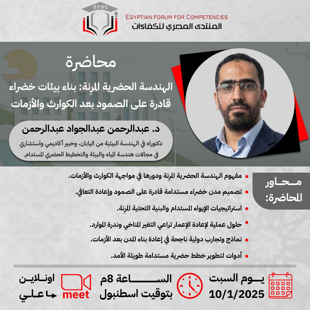 لينك المحاضرة: https://drive.google.com/file/d/1coNkb8-Azkwp9Z2Q_68ERayvr3e7EM1X/view?usp=sharing تعريف الهندسة الحضرية المرنة تُعرف المرونة الحضرية بأنها قدرة المدينة على التخطيط المسبق بحيث لا تكتفي بمواجهة الأزمات بعد وقوعها، بل تمتلك القدرة على الصمود، التكيف، التعافي، والازدهار. الهندسة الحضرية المرنة ليست مجرد استجابة طارئة للكوارث، بل هي خاصية متأصلة في نظام المدينة، وبنيتها البشرية، والطبيعية والتقنية.…